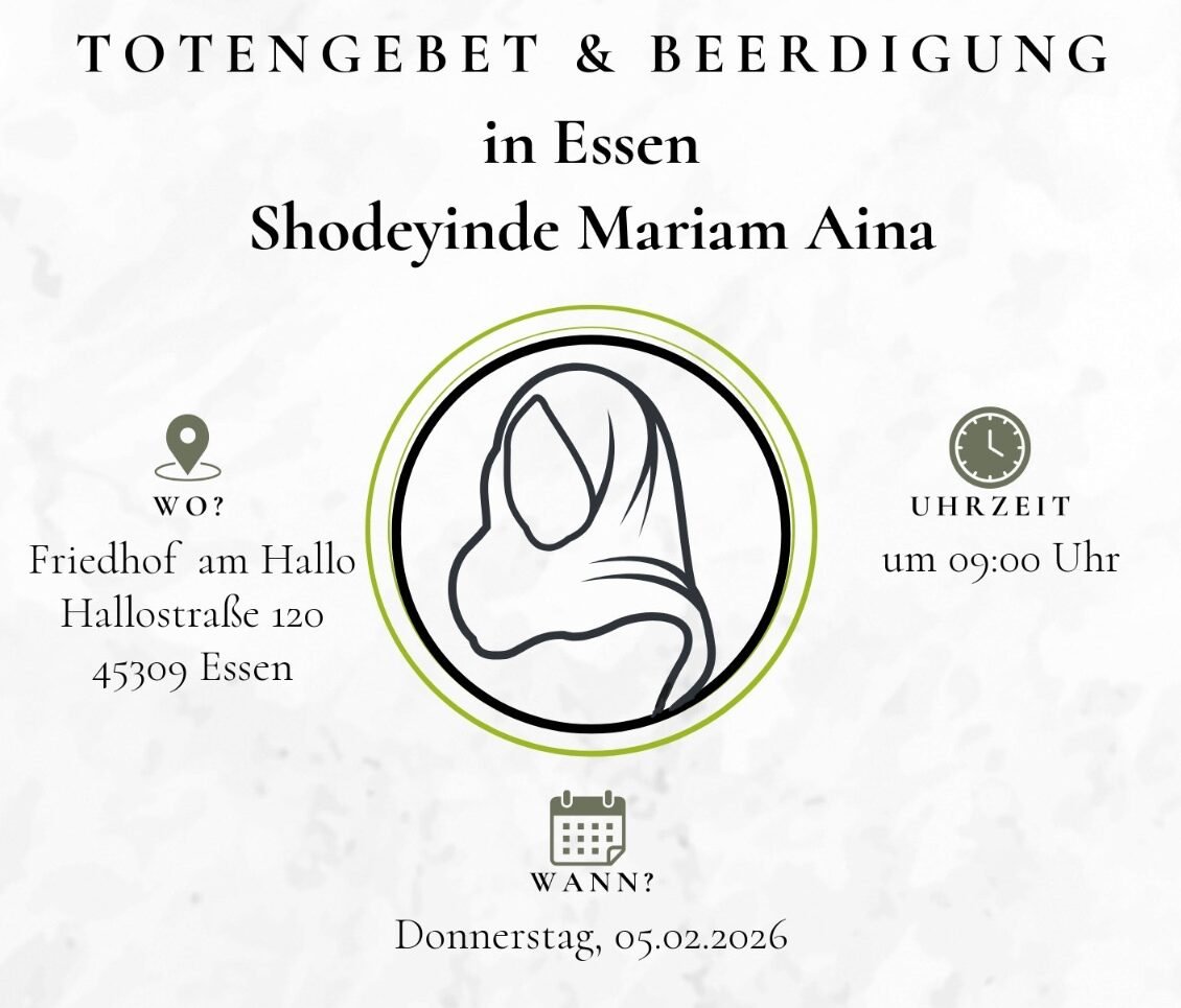 Eine alleinerziehende Schwester in Essen ist zu unserem Schöpfer zurückgekehrt. Sie hat keine Angehörigen in Deutschland und ist auf unsere Hilfe angewiesen um